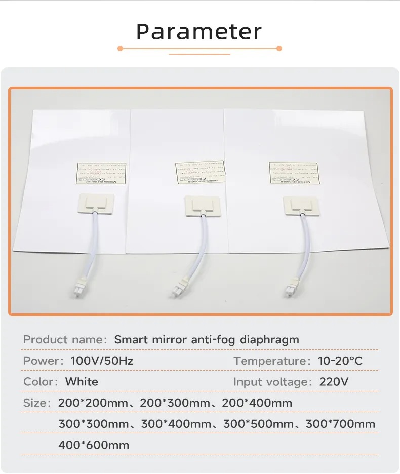 This is a mirror defogger made by Jane Eyre, designed specifically to be used for shower mirrors, not for car rear-view mirrors. The mirror defogger has self-adhesive properties, which makes it easy to install. It also has the ability to heat up when being used, quickly providing a rapid defogging effect, adding more perfection to your smart mirror users’ experience.