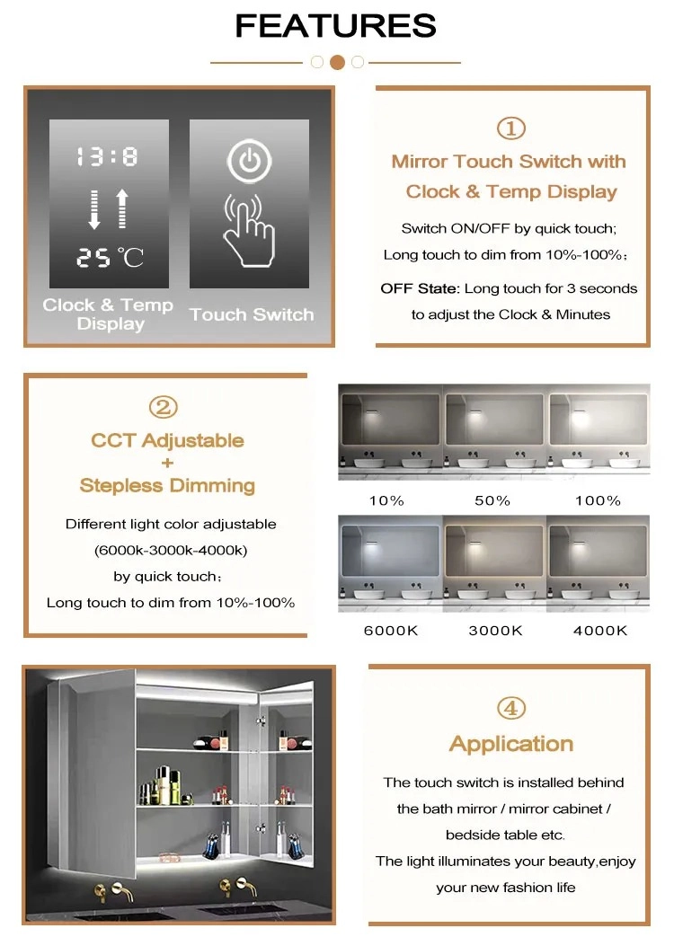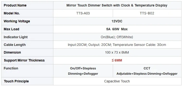*The Mirror Touch Dimmer Switch is a smart switch specially designed for all kinds of bathroom smart light mirrors,